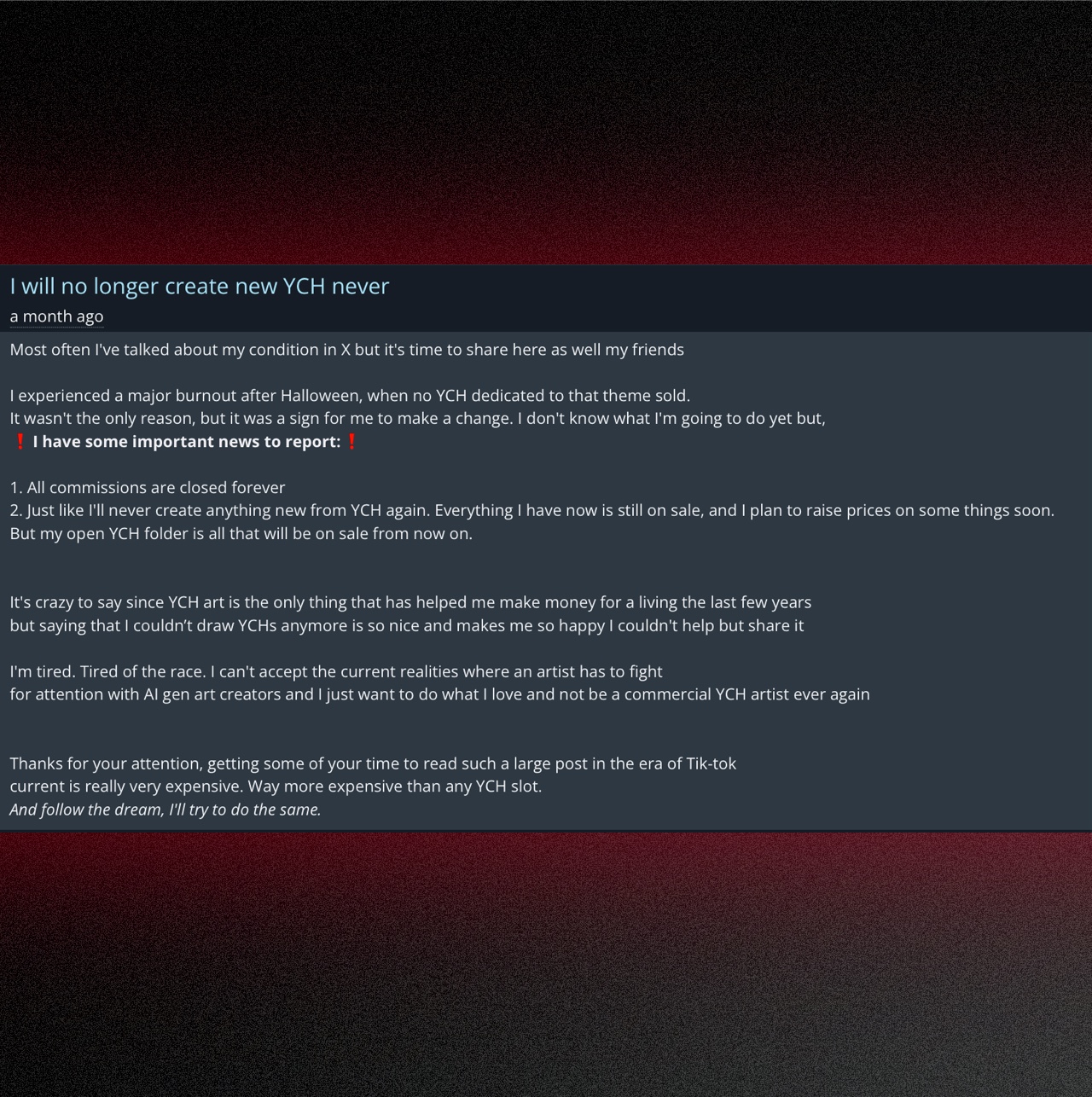 I've been doing a lot to bring the community to myself, but overall I've decided to do what I love and be more than just a comms artist
